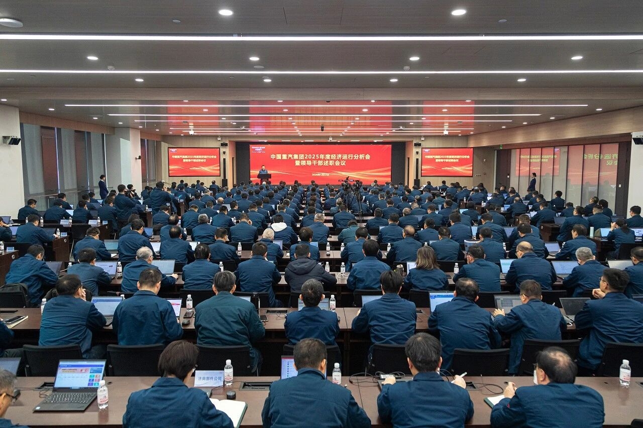 会议首先对山东重工集团2026年度工作会议精神进行了传达学习,要求集团上下深刻领会、认真落实,紧密结合中国重汽发展实际进行科学谋划,确保各项部署落地见效。会议还对中国重汽集团2025年度经济运行情况进行了详细分析和系统复盘,相关领导干部围绕2025年工作情况、存在的问题及2026年工作计划进行了述职。